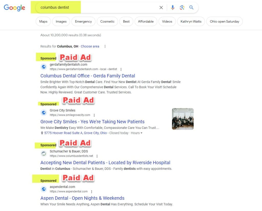 When you see results marked as “Sponsored”, those are part of SEM campaigns.